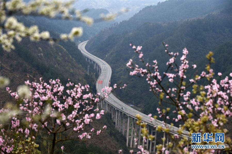 貴州思劍高速公路劍河縣岑松鎮(zhèn)段的春季景觀(3月23日攝)。陽(yáng)春時(shí)節(jié),貴州思(南)劍(河)高速公路劍河縣岑松鎮(zhèn)附近的桃花和梨花陸續(xù)開(kāi)放。 新華社記者楊文斌攝