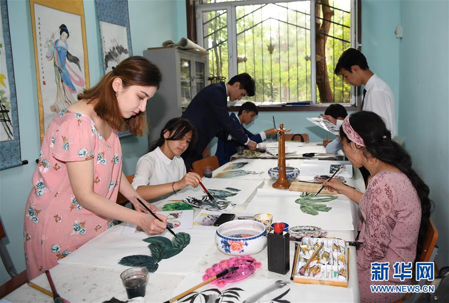6月10日,在塔吉克斯坦首都杜尚別,學(xué)生在塔吉克斯坦民族大學(xué)孔子學(xué)院畫畫。 塔吉克斯坦共和國,簡稱塔吉克斯坦,是位于中亞東南部的內(nèi)陸國家。塔吉克斯坦是多民族國家,全國共有86個民族,人口約910萬。 新華社記者沙達提攝