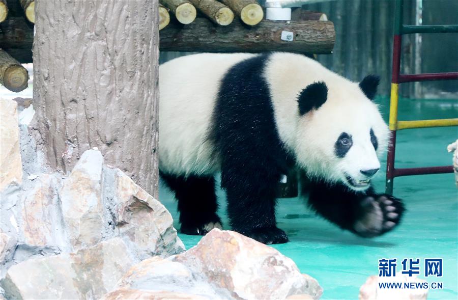 6月18日,大熊貓“星光”在裝修一新的大熊貓館內(nèi)散步。 當(dāng)日,來自四川的大熊貓兄弟“和風(fēng)”與“星光”飛抵上海,正式開始了在上海動物園為期三年的生活。為迎接這對“風(fēng)光兄弟”,上海動物園將原有的大熊貓館擴(kuò)建并裝修一新,空調(diào)、水池、游樂場以及竹葉儲存間等配置齊全。 新華社記者 方喆 攝