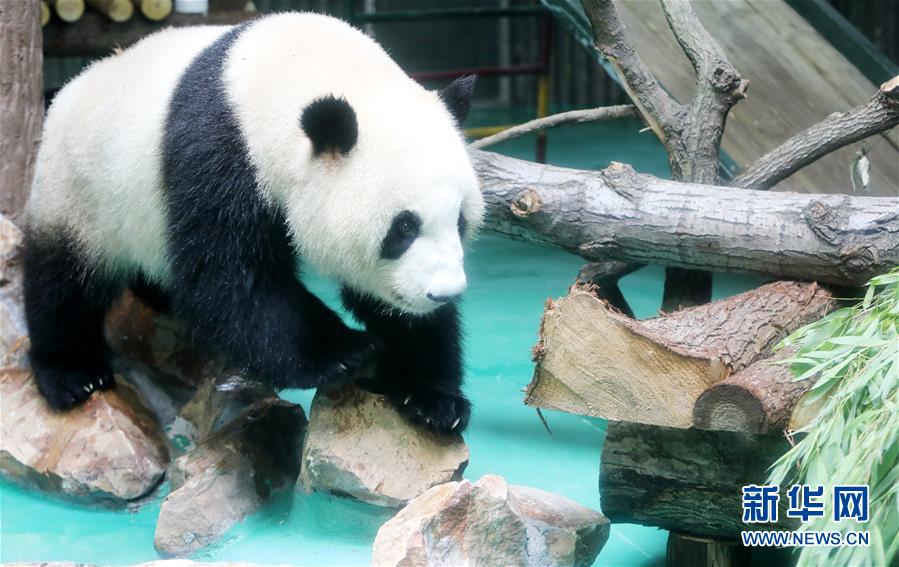 6月18日,大熊貓“星光”走在館內(nèi)水池邊的石頭上。 當(dāng)日,來自四川的大熊貓兄弟“和風(fēng)”與“星光”飛抵上海,正式開始了在上海動(dòng)物園為期三年的生活。為迎接這對(duì)“風(fēng)光兄弟”,上海動(dòng)物園將原有的大熊貓館擴(kuò)建并裝修一新,空調(diào)、水池、游樂場(chǎng)以及竹葉儲(chǔ)存間等配置齊全。 新華社記者 方喆 攝