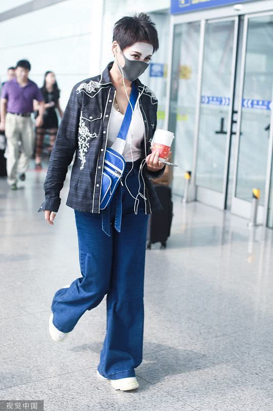 2019年6月19日,北京,寧?kù)o現(xiàn)身機(jī)場(chǎng)。她穿敷面膜亮相短發(fā)干練個(gè)性灑脫,戴口罩對(duì)鏡揮手大方任拍。