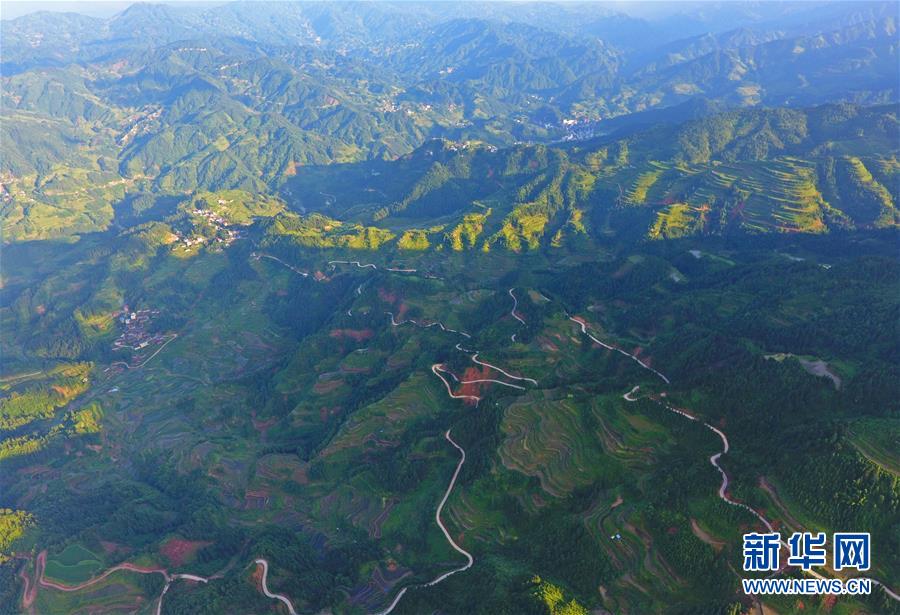 這是融水苗族自治縣桿洞鄉(xiāng)百秀村的村屯公路(6月20日無人機拍攝)。新華社記者 黃孝邦 攝