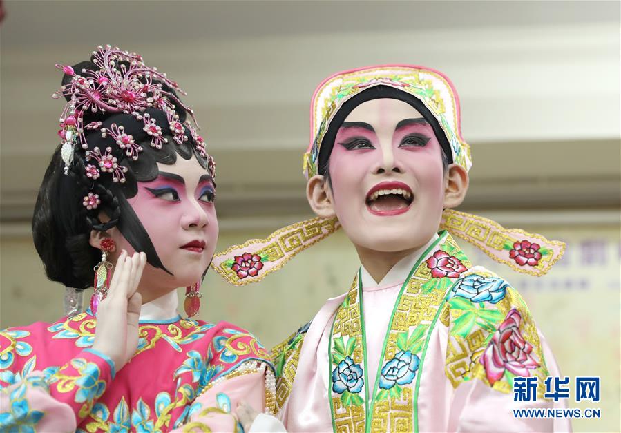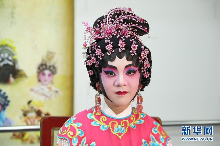 粵劇小演員陸瑞徽在準(zhǔn)備折子戲《艷曲醉周郎》的表演(6月8日攝)。 聲輝粵劇推廣協(xié)會成立于2003年,是香港重要粵劇藝術(shù)團體之一,致力于向青少年推廣粵劇。協(xié)會目前有兩個初班,3個中班,一個青少年班。粵劇又稱“廣東大戲”,表演技藝包括“唱做念打”,即唱功、身段、臺詞、武打,主要流行于廣東、廣西和香港、澳門等地區(qū)。2009年,粵劇被列入聯(lián)合國教科文組織人類非物質(zhì)文化遺產(chǎn)代表作名錄,今年正逢十周年。 新華社記者 吳曉初 攝