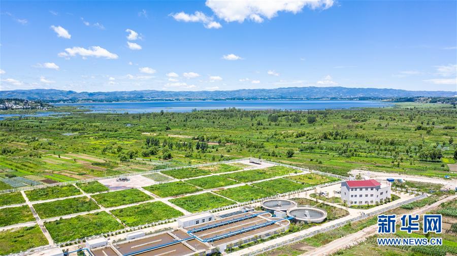 6月20日無人機(jī)拍攝的草海國(guó)家級(jí)自然保護(hù)區(qū)萬噸生活污水處理廠。 新華社記者 陶亮 攝