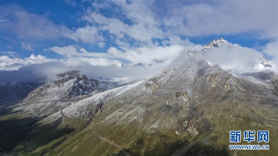 這是雪后初霽的拉依布拉克牧場(chǎng)景觀(6月22日無人機(jī)拍攝)。
