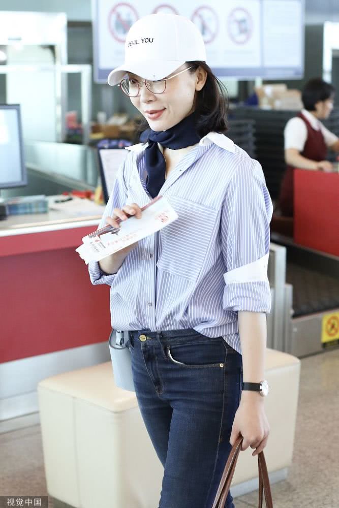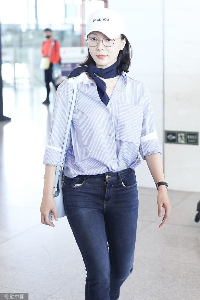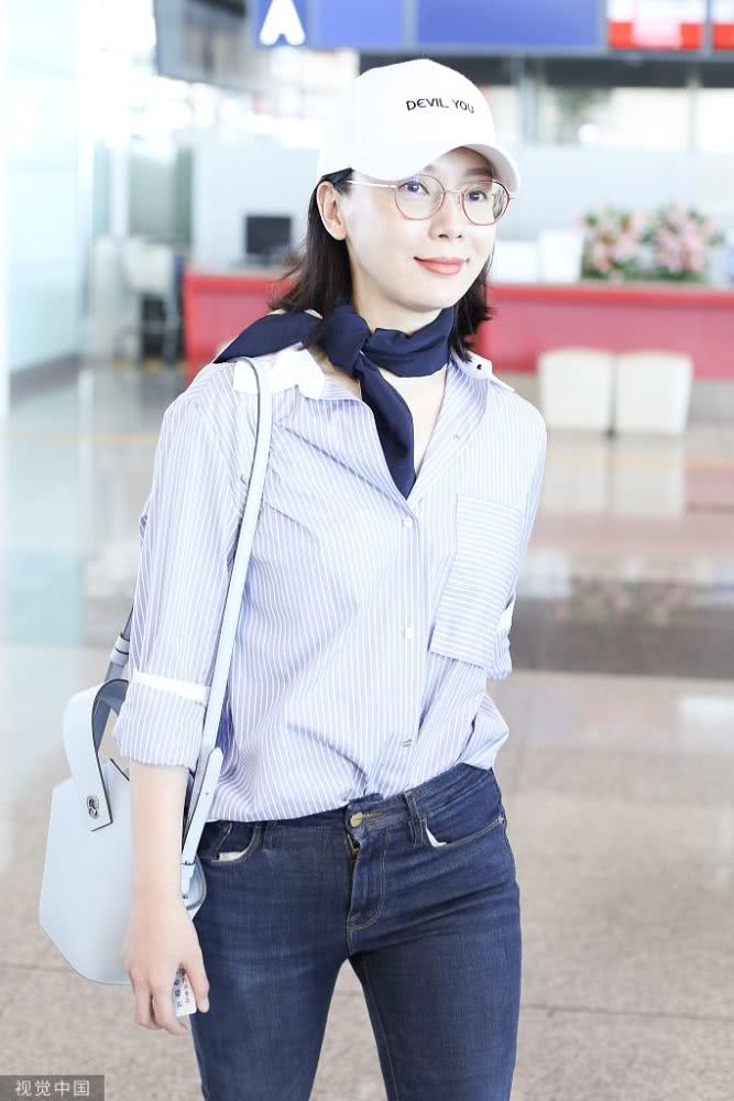 2019年6月30日,北京,陳數(shù)亮相機場,她身穿條紋襯衫搭配藍色方巾完美詮釋知性美,簡單造型非常耐看,已經(jīng)42歲的她皮膚也是亮白嫩滑,堪稱凍齡美人了。