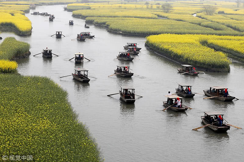 2019年4月7日,江蘇省興化市千垛菜花景區(qū)迎來旅游高峰期,數(shù)萬游客前來欣賞盛開的油菜花,樂享假日好時(shí)光。