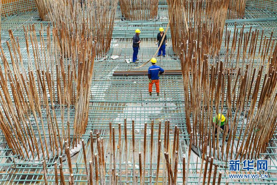 中鐵大橋局施工人員在湛江調(diào)順跨海大橋西岸主塔墩承臺綁扎鋼筋(7月6日攝)。 湛江調(diào)順跨海大橋的東岸主塔墩承臺日前順利建成,大橋步入主塔塔柱施工階段。調(diào)順跨海大橋?yàn)閺V東省重點(diǎn)工程,大橋跨越湛江灣連接湛江市調(diào)順島及海東新區(qū),主橋?yàn)殡p塔雙索面斜拉橋,主塔高136.9米,全長約9.36公里。 新華社記者 劉大偉 攝