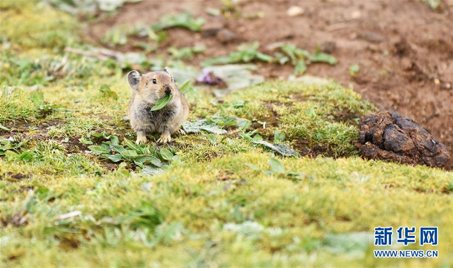 7月6日,一只高原鼠兔在西藏思金拉錯湖邊進(jìn)食。 新華社記者 周錦帥 攝