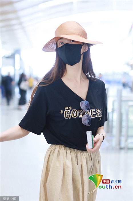 2019年7月23日,上海,林志玲現(xiàn)身機場,穿著打扮與三天前在臺北機場相比毫無變化,依舊身穿黑體恤搭配米色休閑褲,墨鏡也依舊掛在胸前。