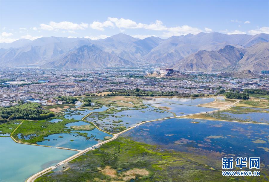 被譽為“拉薩之肺”的拉魯濕地(6月5日無人機拍攝)。