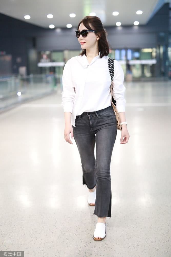 陳數(shù)穿白襯衫知性淺笑甜美迷人 架黑超拎漁網(wǎng)紋展職場女性魅力