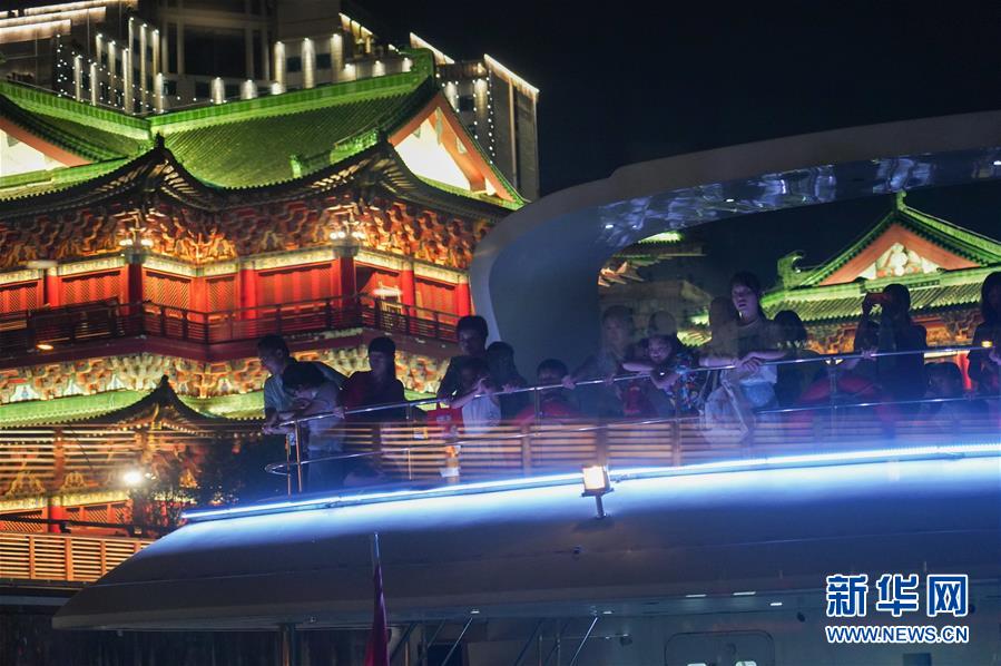 在江西南昌,游客在游輪上欣賞夜景(8月6日攝)。 新華社記者 萬象 攝