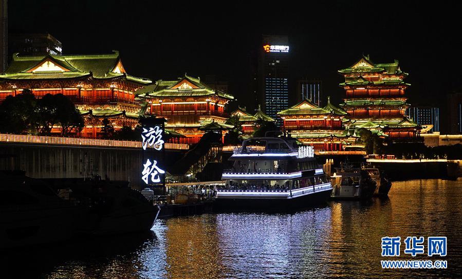 在江西南昌,游客在游輪上觀賞夜景(8月6日攝)。 新華社記者萬象 攝
