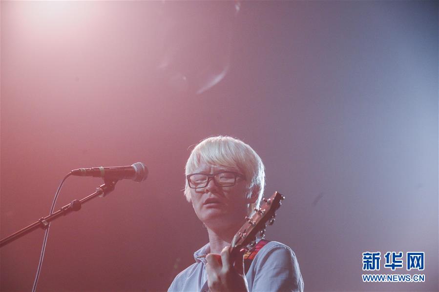 8月14日,8772樂隊成員謝航程在演唱會上表演。新華社記者張玉薇攝