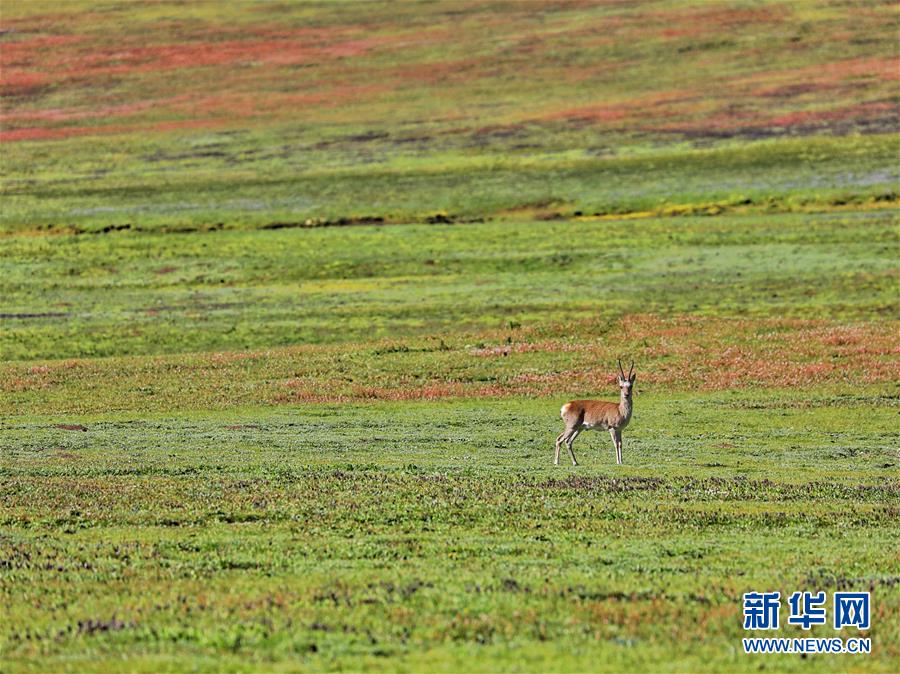 一只藏原羚在草原上駐足(8月14日攝)。 8月12日至14日,來(lái)自全國(guó)各地的31名自然愛(ài)好者聚集在海拔4200米的青海省玉樹(shù)藏族自治州稱(chēng)多縣嘉塘草原,參加“2019嘉塘自然觀察節(jié)”。自然愛(ài)好者用獨(dú)特視角記錄珍稀野生動(dòng)植物,觀察三江源生態(tài)。 新華社記者 張大川 攝
