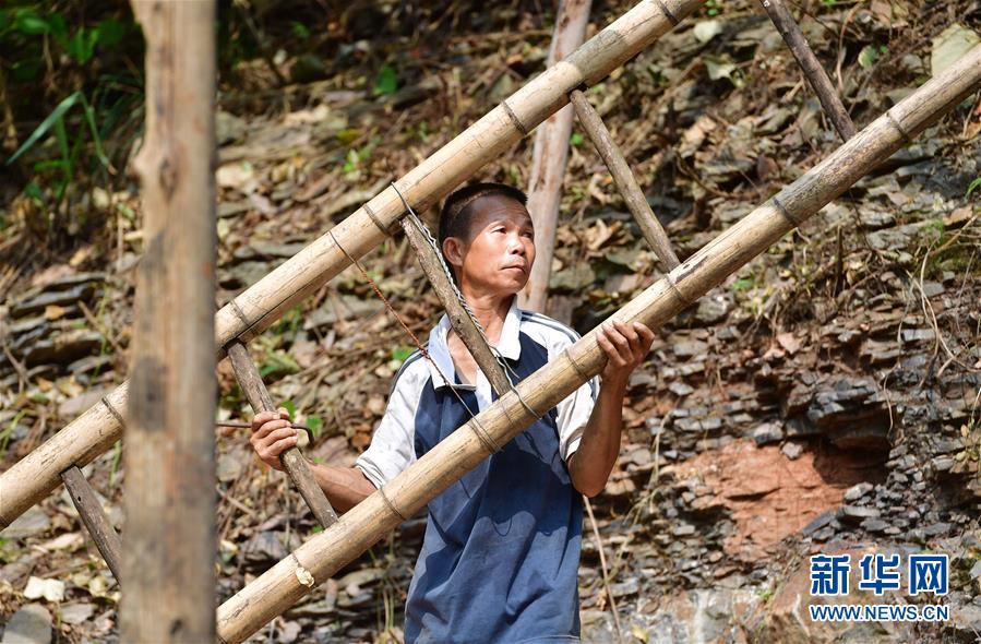 龍革雄在搭建雞舍(8月16日攝)。 新華社記者 黃孝邦 攝