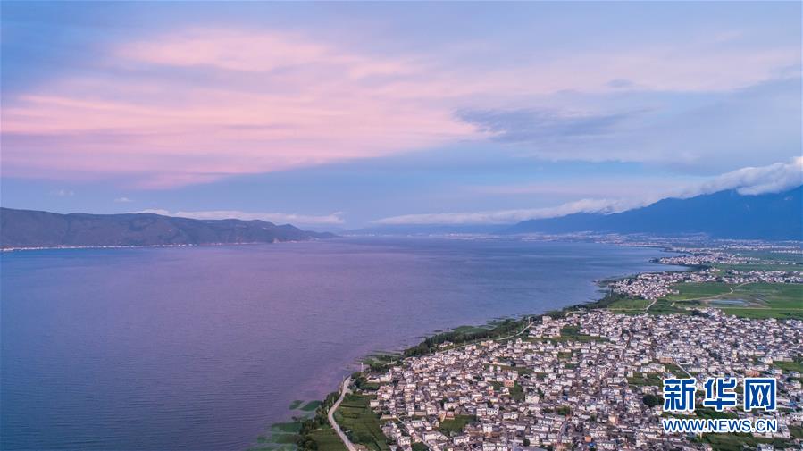云南大理洱海一景(2018年7月5日無人機拍攝)。 新華社記者 胡超 攝