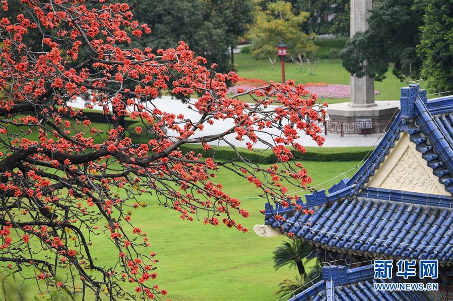 廣州中山紀念堂盛開的木棉花(2月24日攝)。  新華社記者 鄧華 攝