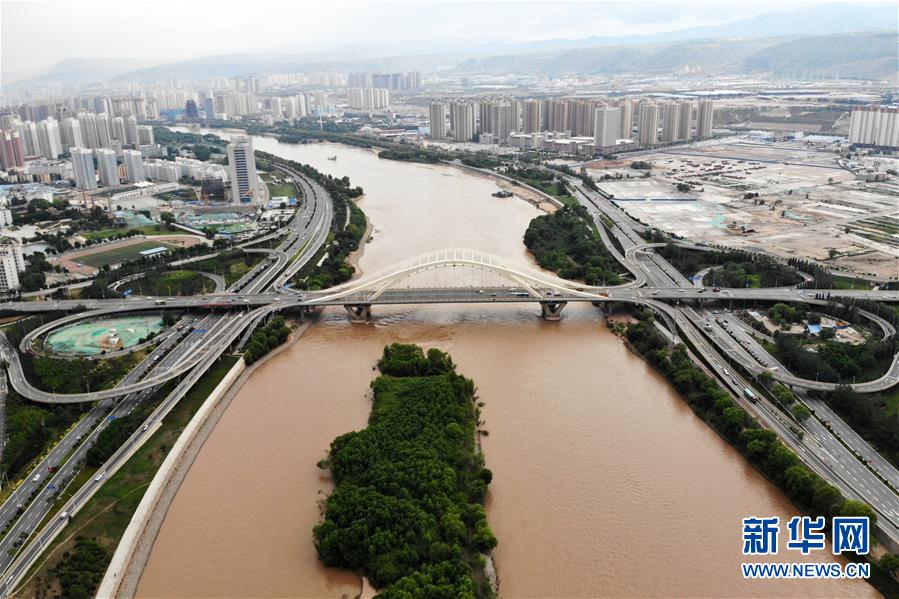 黃河蘭州段的深安黃河大橋(6月11日無人機拍攝)。新華社記者 范培珅 攝