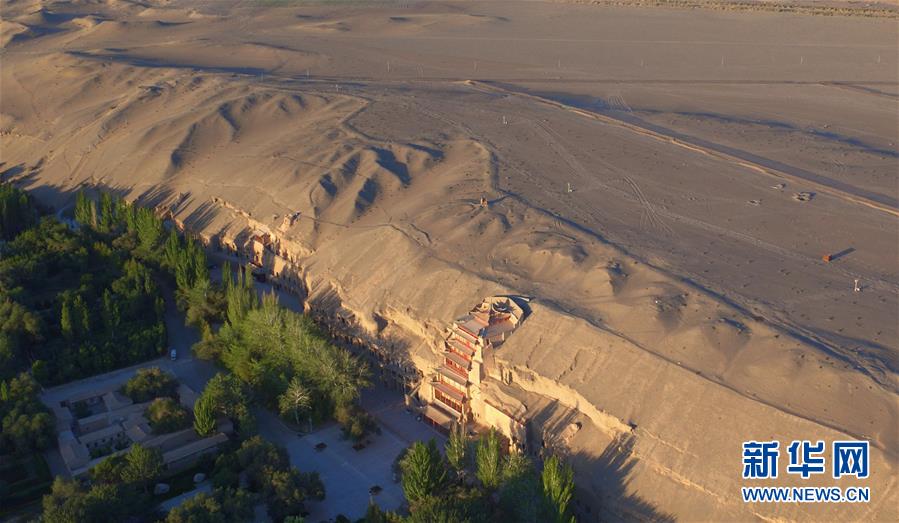 世界文化遺產(chǎn)莫高窟(2016年9月7日無人機拍攝)。新華社記者 陳斌 攝