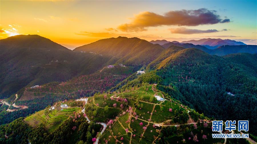 這是夕陽時分的云南南澗彝族自治縣無量山櫻花谷一景(2017年12月16日無人機拍攝)。  新華社記者胡超攝