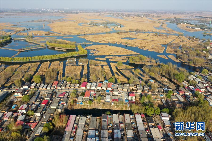 3月31日無人機(jī)拍攝的雄安新區(qū)白洋淀。新華社記者王曉攝