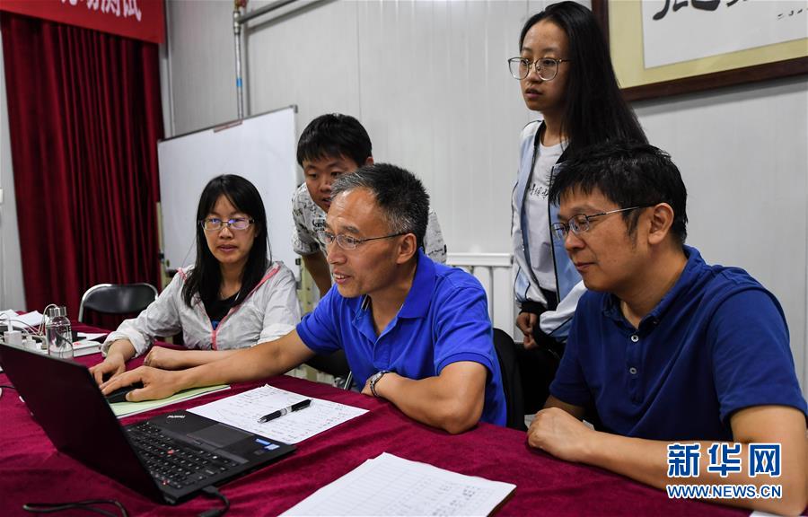在明安圖觀測基地,科研人員進行研討(7月27日攝)。 新華社記者 劉磊 攝