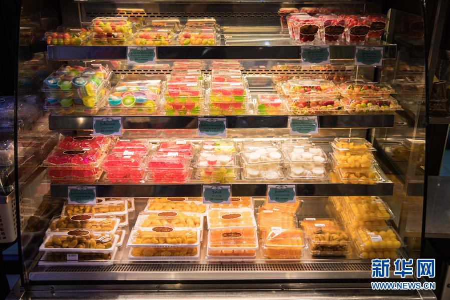 9月1日,店員在泰國曼谷著名的“九姐妹甜點”店整理貨架。