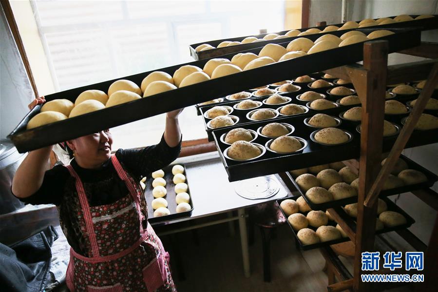 8月29日,付艷梅取出發(fā)酵好的面包團。新華社記者淡航攝