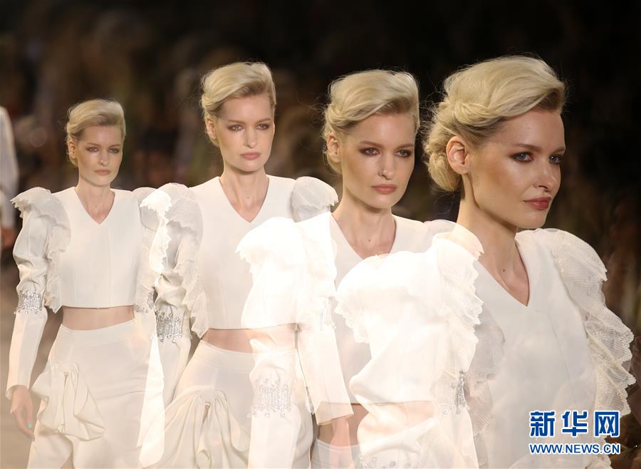 9月7日,在美國紐約,模特展示Taoray Wang品牌時裝(多重曝光拍攝)。 新華社記者 秦朗 攝