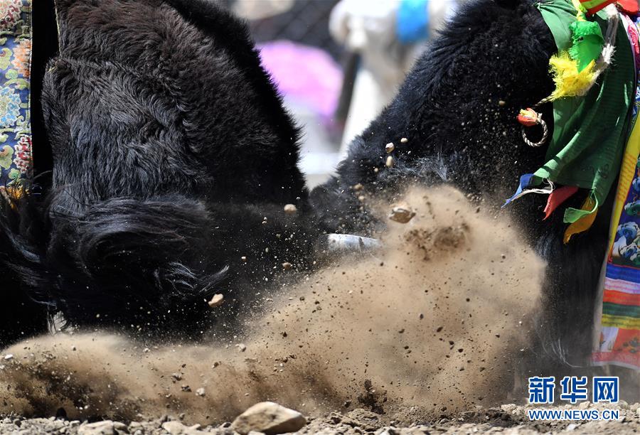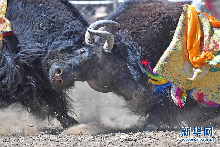 者下鄉(xiāng)斗牛節(jié)歷史悠久,是西藏自治區(qū)非物質(zhì)文化遺產(chǎn)。牧民為參加比賽的種牦牛披綢掛緞,將牛群趕到位于日喀則市白朗縣者下鄉(xiāng)的斗牛場上。參賽的種牦牛為了爭奪牛群的控制權(quán),在成群的母牛面前,更加好斗。角斗有的瞬間分出勝負,有的持續(xù)幾十分鐘,最終勝出的被稱為“牦牛至尊”。