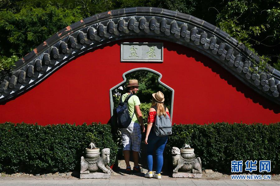 8月24日,在比利時(shí)布呂熱萊特市,游客參觀(guān)天堂動(dòng)物園的“中國(guó)園”。新華社記者 鄭煥松 攝