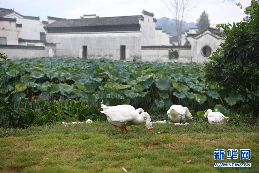 這是呈坎村內(nèi)的荷塘和古民居(8月28日攝)。新華社記者劉軍喜攝