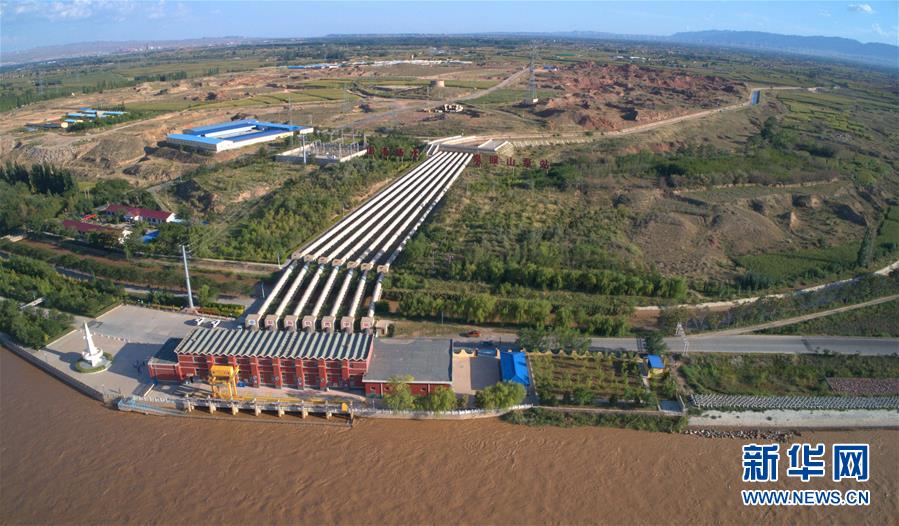 在寧夏固海揚(yáng)水工程泉眼山泵站,巨大的揚(yáng)水管道將黃河水從低處向高處抬升(8月31日無(wú)人機(jī)拍攝)。新華社記者劉詩(shī)平攝