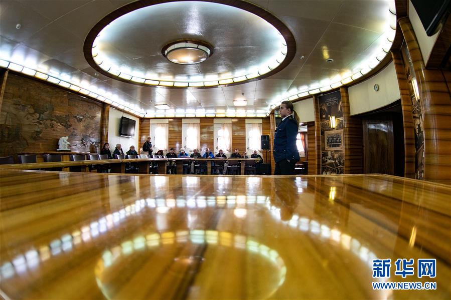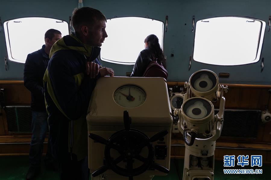 9月14日,在俄羅斯摩爾曼斯克,人們?cè)诤藙?dòng)力破冰船“列寧”號(hào)內(nèi)部參觀。  新華社記者 白雪騏 攝