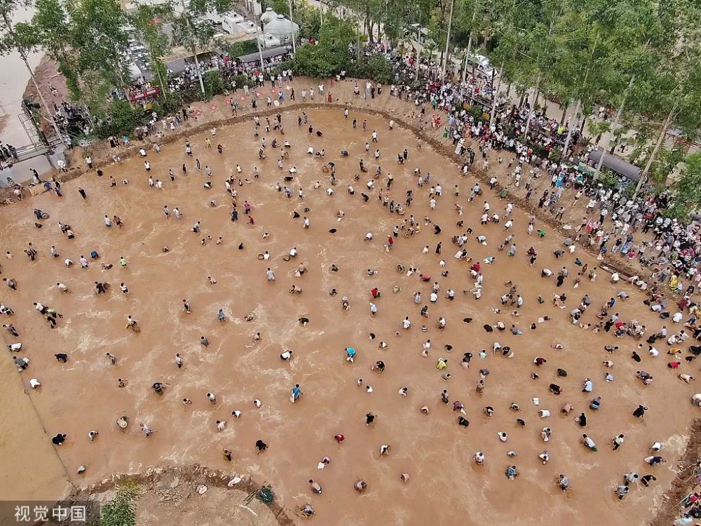 2019年9月7日,重慶,涪陵區(qū)曬秋捉魚活動在紅酒小鎮(zhèn)舉行。