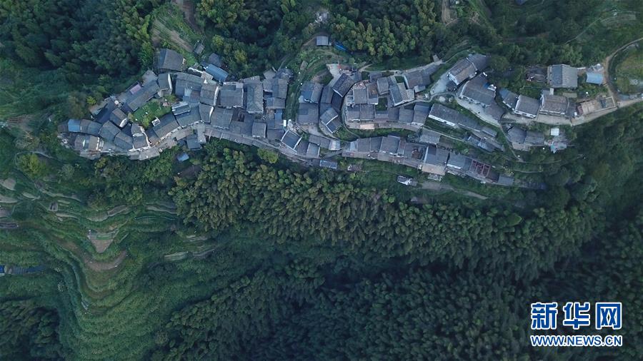 晨曦中的木梨硔村景色(9月18日無人機拍攝)。9月18日清晨,地處皖南山區(qū)的安徽省黃山市休寧縣木梨硔村沐浴在晨曦之中,靜謐祥和。新華社記者張端攝