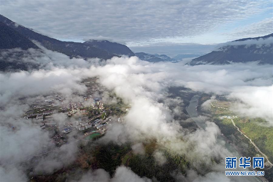這是云海籠罩的西藏墨脫縣(4月9日無人機(jī)拍攝)。新華社記者李鑫攝