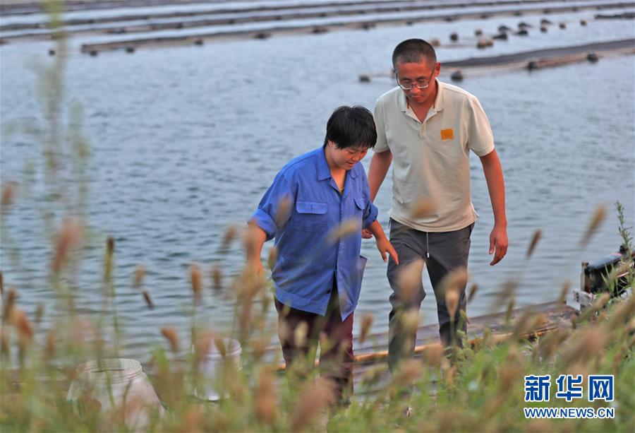 郭旗和愛人郝赫在查看完海參后上岸(9月5日攝)。 新華社記者 楊青 攝