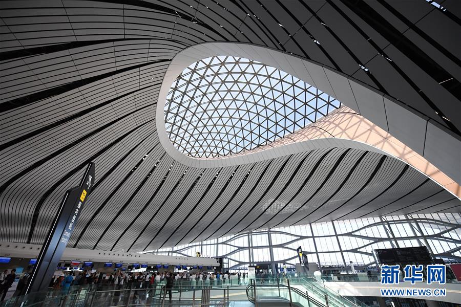 9月25日拍攝的北京大興國際機(jī)場(chǎng)航站樓內(nèi)部。新華社記者張晨霖?cái)z