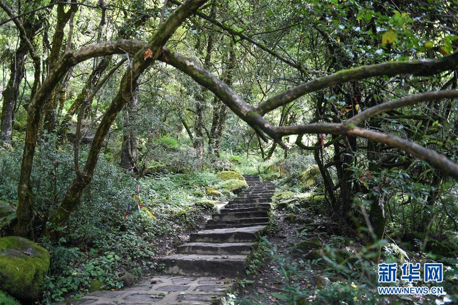 勒布溝原始森林內(nèi)的步行道(9月25日攝)。