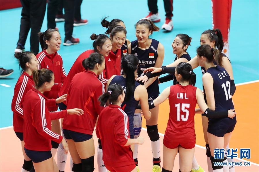 9月24日,中國隊球員慶祝比賽獲勝。新華社記者杜瀟逸攝