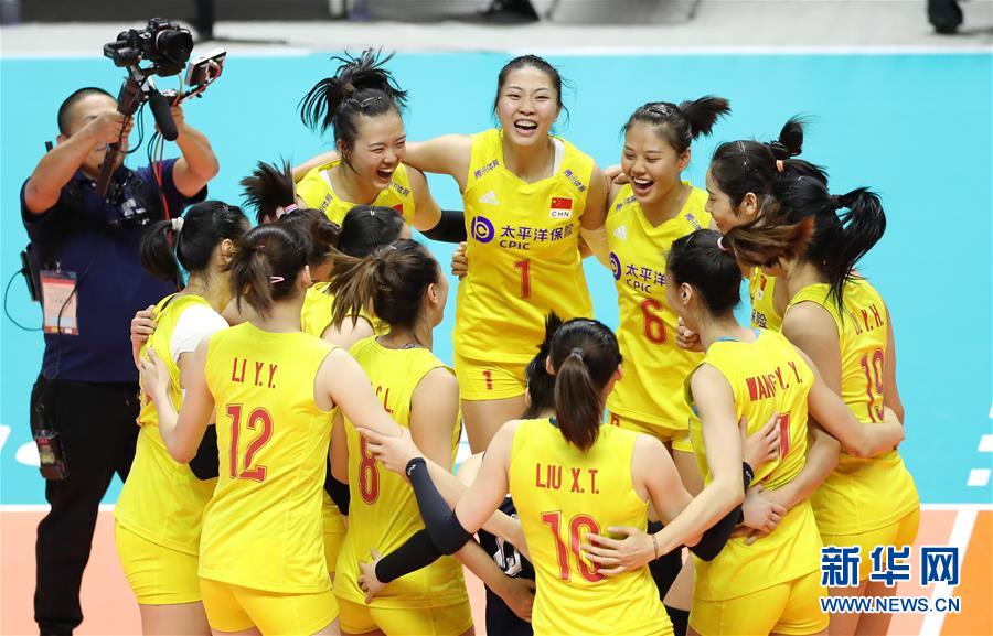 9月23日,中國隊(duì)球員慶祝比賽勝利。當(dāng)日,在日本札幌舉行的2019年女排世界杯賽第二階段A組循環(huán)賽中,中國隊(duì)以3比0戰(zhàn)勝美國隊(duì)。新華社記者杜瀟逸攝
