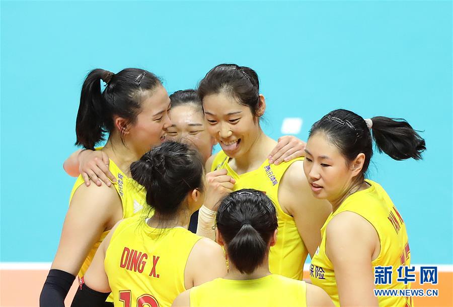 9月23日,中國隊球員朱婷(中)在得分后慶祝。當日,在日本札幌舉行的2019年女排世界杯賽第二階段A組循環(huán)賽中,中國隊以3比0戰(zhàn)勝美國隊。新華社記者杜瀟逸攝