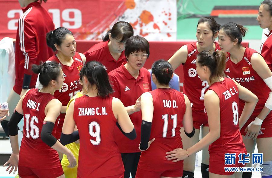 9月22日,中國(guó)隊(duì)主教練郎平(中)在比賽間隙指導(dǎo)球員。當(dāng)日,在日本札幌舉行的2019年女排世界杯賽第二階段A組循環(huán)賽比賽中,中國(guó)隊(duì)以3比2戰(zhàn)勝巴西隊(duì)。新華社記者杜瀟逸攝