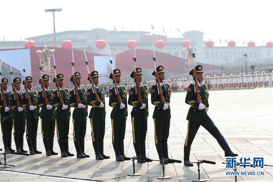 10月1日上午,慶祝中華人民共和國成立70周年大會在北京天安門廣場隆重舉行。這是標(biāo)兵入場。新華社記者劉續(xù)攝