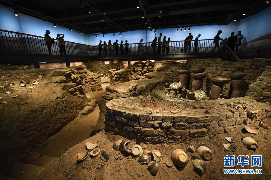 10月2日,游客在寧夏銀川市西夏陵景區(qū)的西夏博物館觀看展出的瓦當、滴水。 新華社記者 馮開華 攝