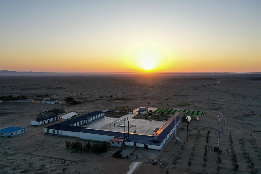 這是內(nèi)蒙古自治區(qū)額濟納旗算井子邊境派出所(9月25日無人機拍攝)。新華社記者劉磊攝