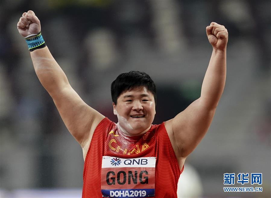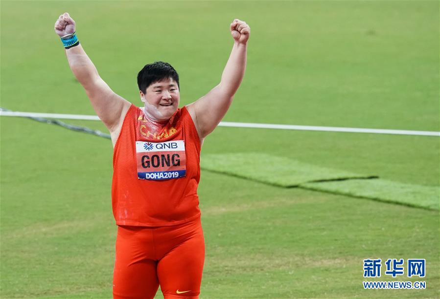 當日,在卡塔爾多哈舉行的2019國際田聯(lián)世界田徑錦標賽女子鉛球決賽中,衛(wèi)冕冠軍、中國選手鞏立姣以19米55的成績奪得冠軍。 新華社記者李明攝
